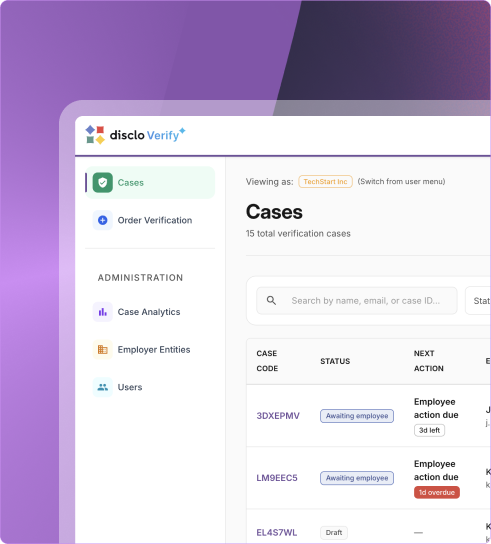 Verify Connect embeds Disclo Verify directly into your product through secure APIs and webhooks. Partners offer enterprise-grade verification while Disclo manages documentation, provider outreach, compliance, and defensibility.